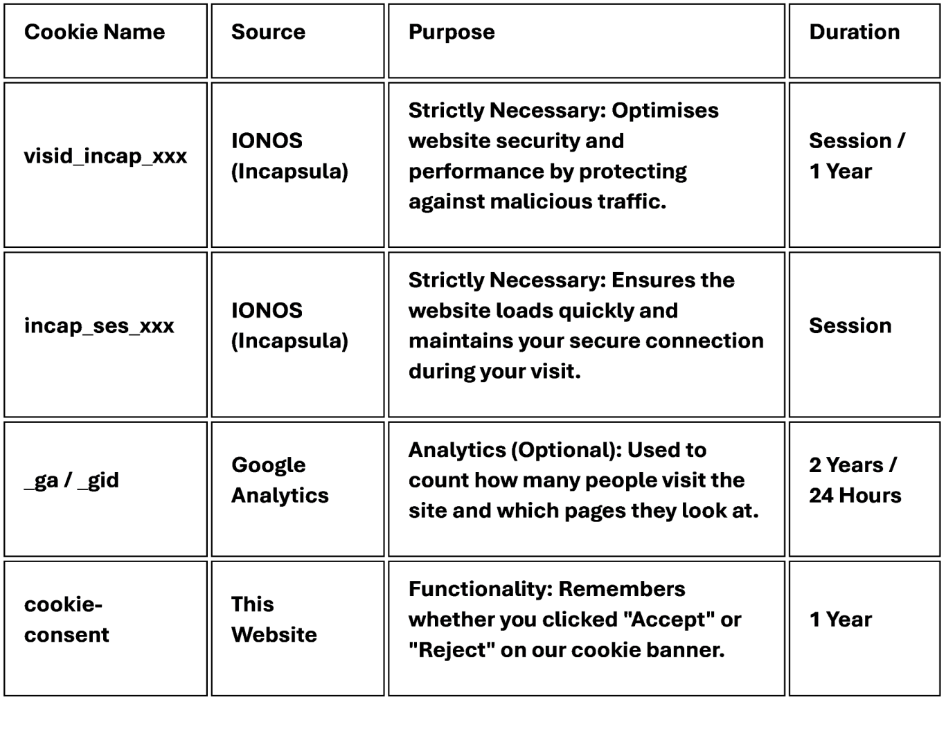 3. Specific Cookies Used on This Site